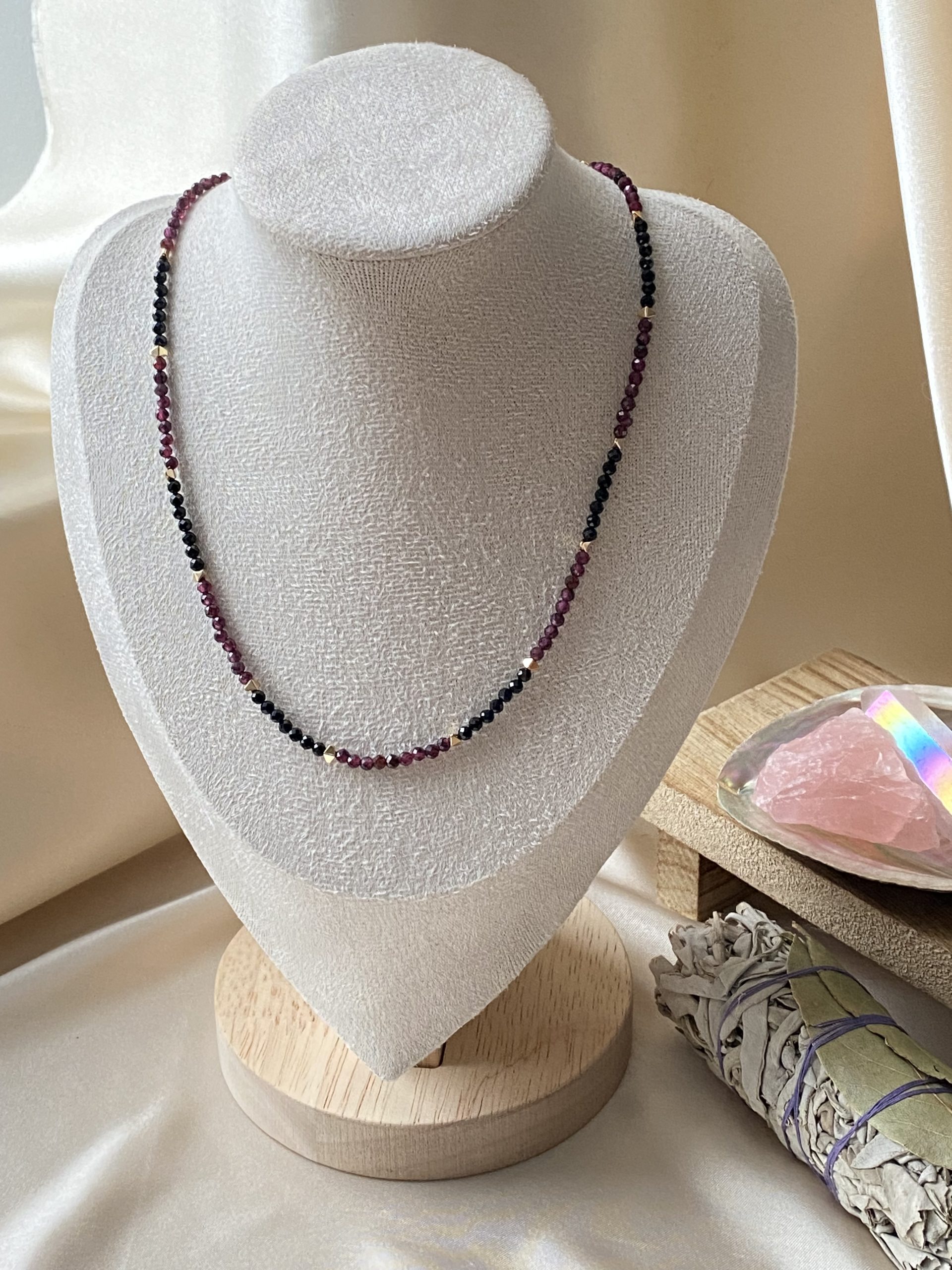 Turmalin, granat 3mm 40 cm plus 5 cm